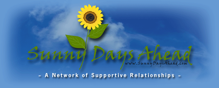 Welcome to Sunny Days Ahead. The creator and inspiration behind Sunny Days Ahead is Joan Chintz. You can read Joan's story and the journey she has made to get here in the Story section. Sunny Days Ahead is a community website that serves a currently unmet need of widows and widowers, who still want to socialize and meet new people and continue a rich and fulfilling life, despite the loss of a much loved partner. WHAT DO I DO NOW ? We meet online, on the telephone and in the Redwood City area of California, but in late 2007, we will be setting up meetings in other parts of the state and USA where you can come and share experiences, meet new people and listen to inspirational people. To join our community and to find out about events please email Joan at joan@sunnydaysahead.com, visit Joan's BLOG or view upcoming events on the interactive on-line calendar. |